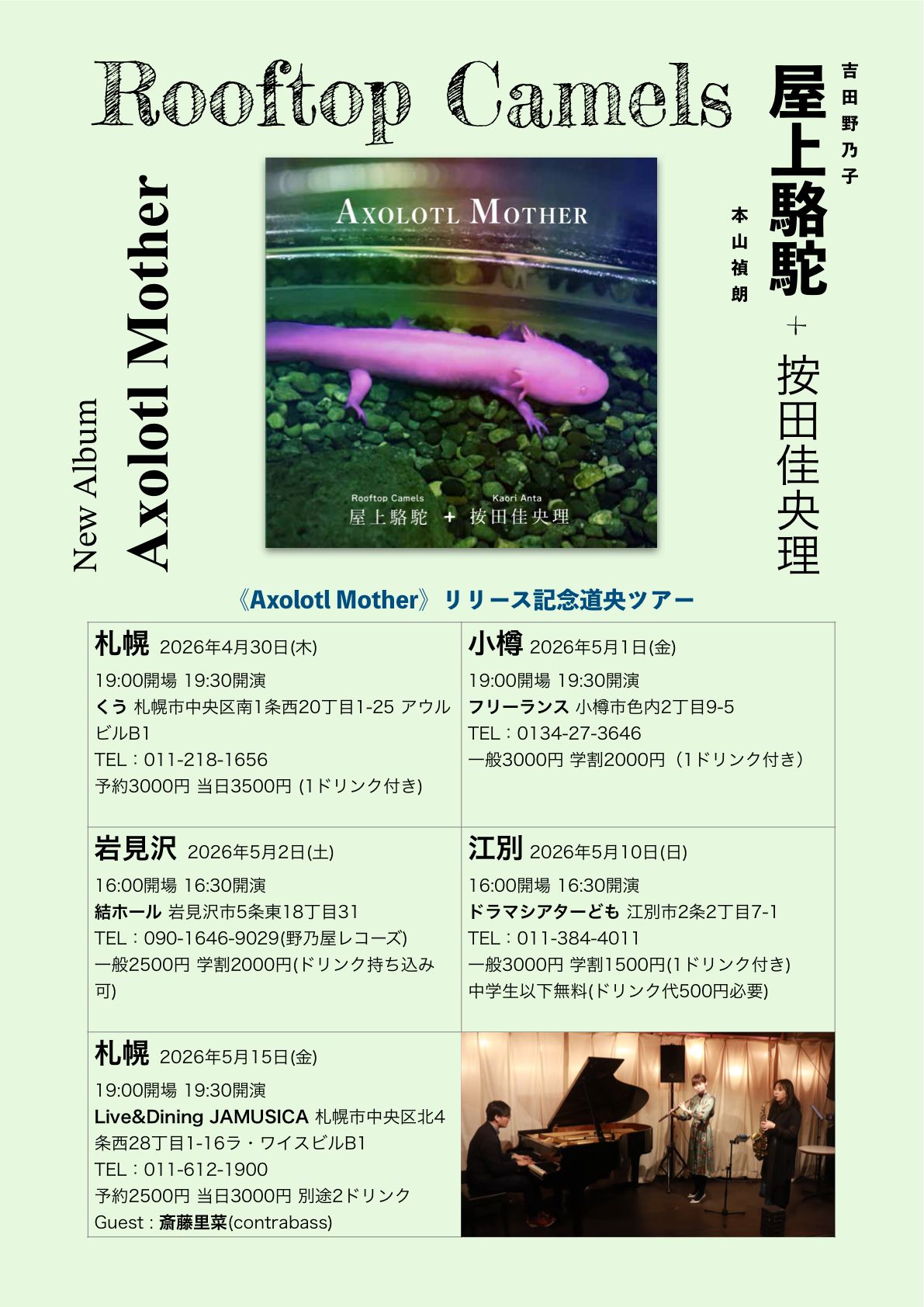 Rooftop Camels屋上駱駝+按田佳央理 アルバム"Axolotl Mother”発売記念ツアー江別編